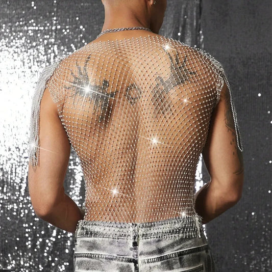 Mirror Sequin Cropped Rhinestone Mesh Top