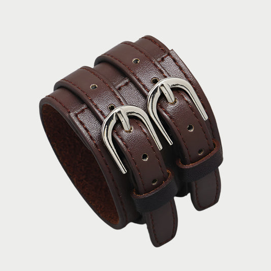 Adjustable Leather Dual-Buckle Bracelet