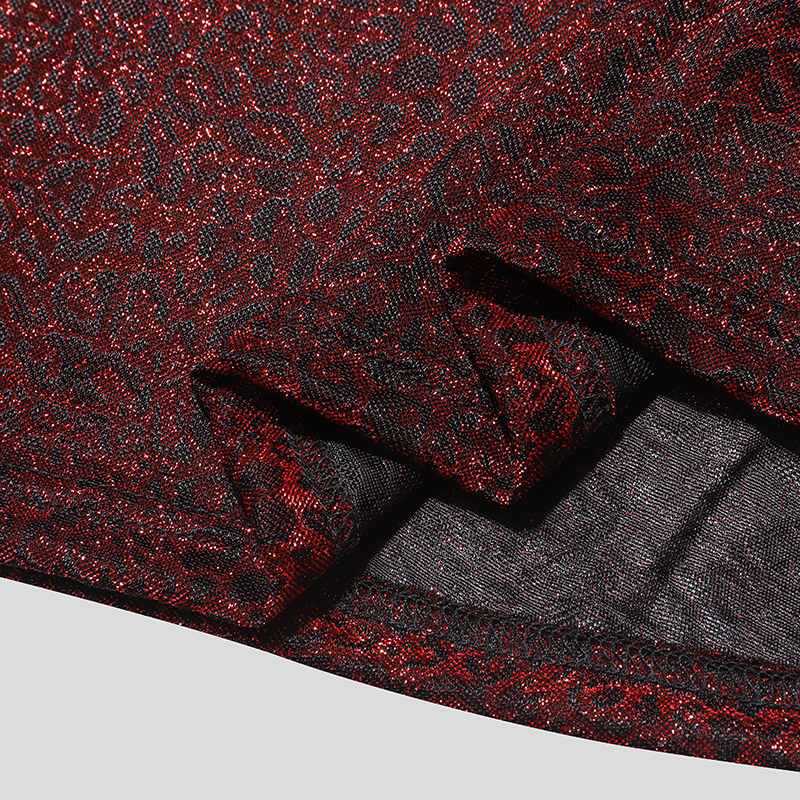 The Sheer Metallic Mock Neck Tee is made to turn heads. Crafted from lightweight, semi-transparent fabric with a shimmering red and black finish, it adds instant edge and allure to your look. The mock neck design and slim fit enhance your frame, making it perfect for layering or standing bold on its own.