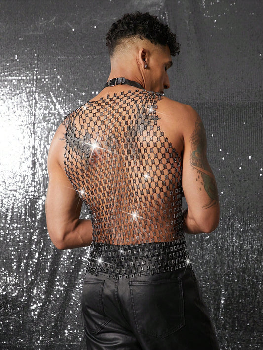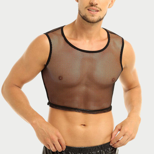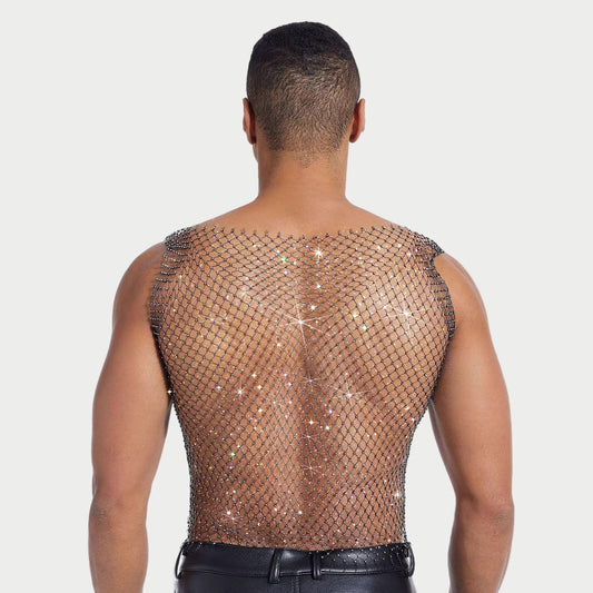 Mirror Sequin Cropped Rhinestone Mesh Top