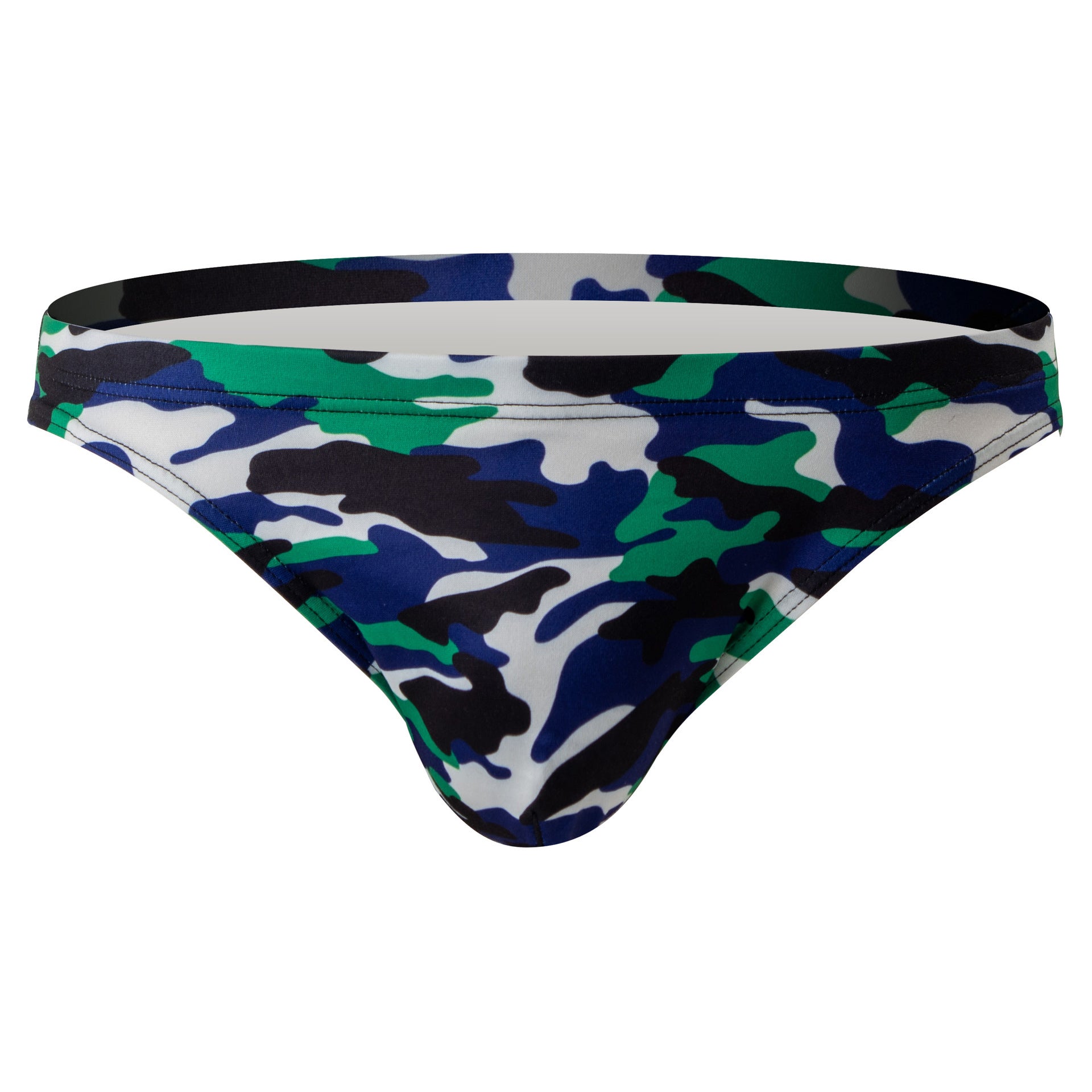 The Camo Swim Briefs bring bold energy to your pool or beach look. Made from quick-drying stretch fabric, they provide a snug, comfortable fit that moves with you. The low-rise cut enhances your shape while offering just the right amount of coverage. Designed with vibrant camouflage prints in blue, red, and classic army tones, these briefs make a statement whether you're swimming, sunbathing, or showing off at the next circuit pool party.