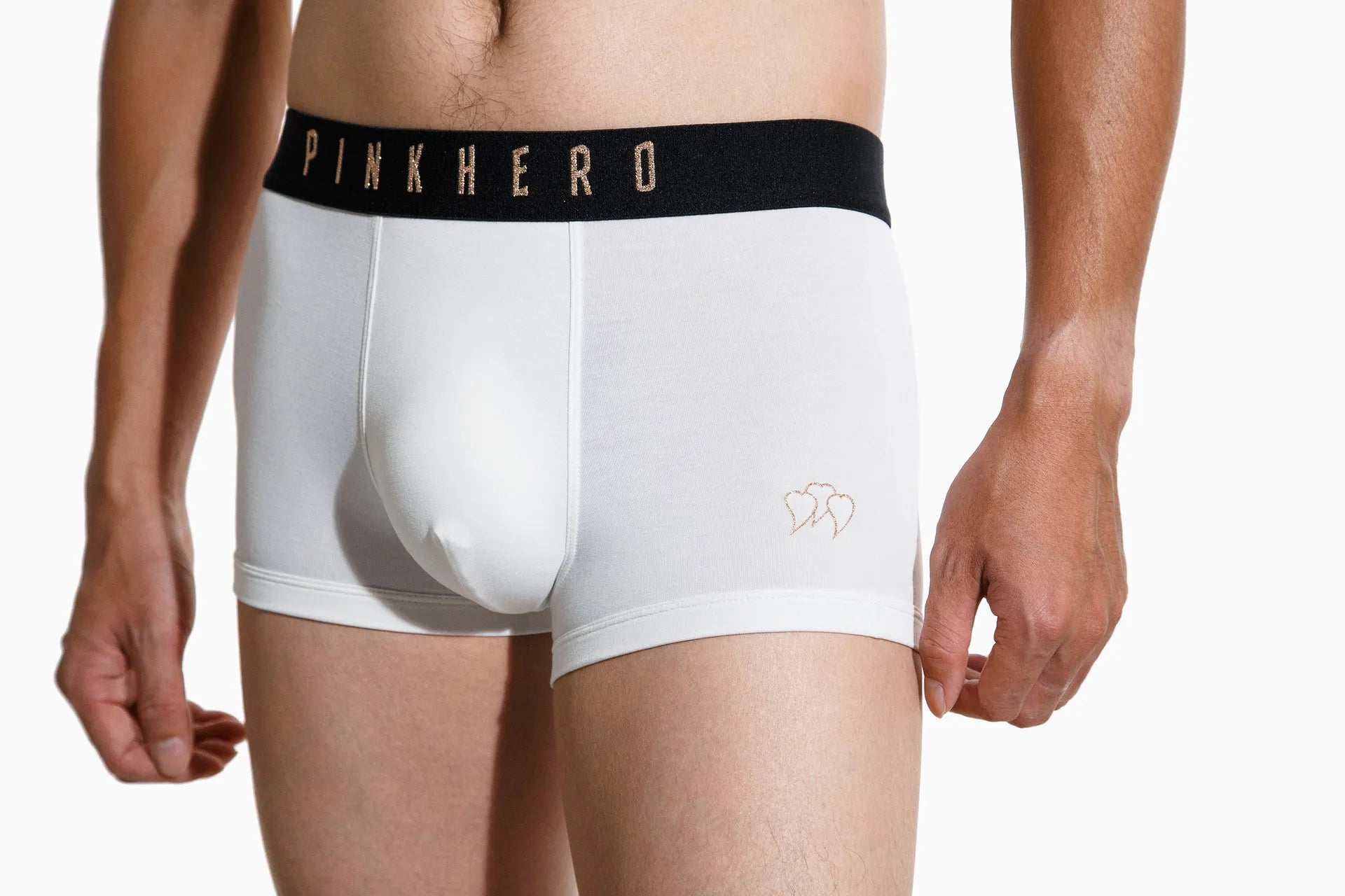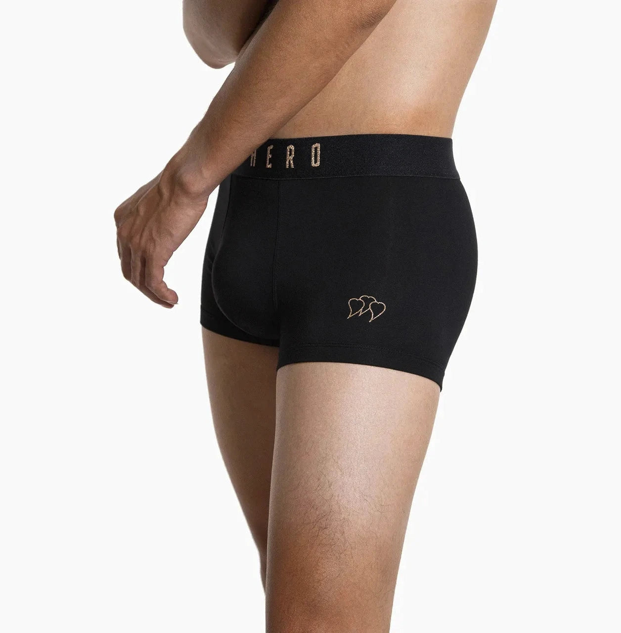 Upgrade your essentials with the HERO Hearts Bamboo Trunks. Made from silky-soft bamboo fabric, these trunks are breathable, stretchy, and gentle on skin. The wide waistband sits comfortably, while the supportive pouch and short leg give a modern fit – perfect for everyday comfort or a night out.