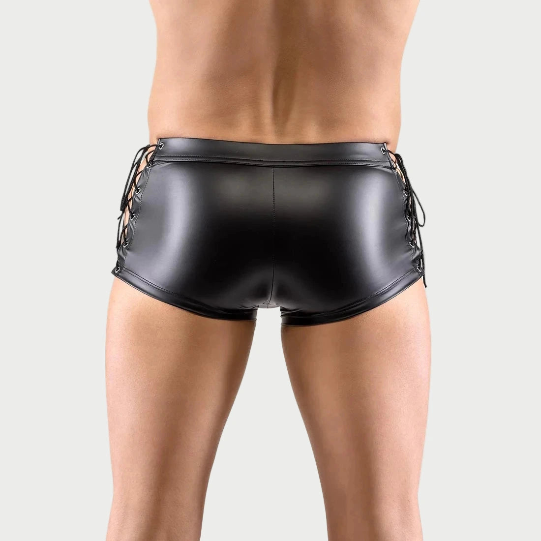 Bring bold energy to your look with this sleek faux leather set. The Lace-Up Faux Leather Tank features a smooth, body-hugging fit with adjustable lace-up sides for customizable style and comfort. Pair it with the matching Lace-Up Faux Leather Shorts, designed with side lacing and a front zip detail that adds an edgy, provocative touch.
